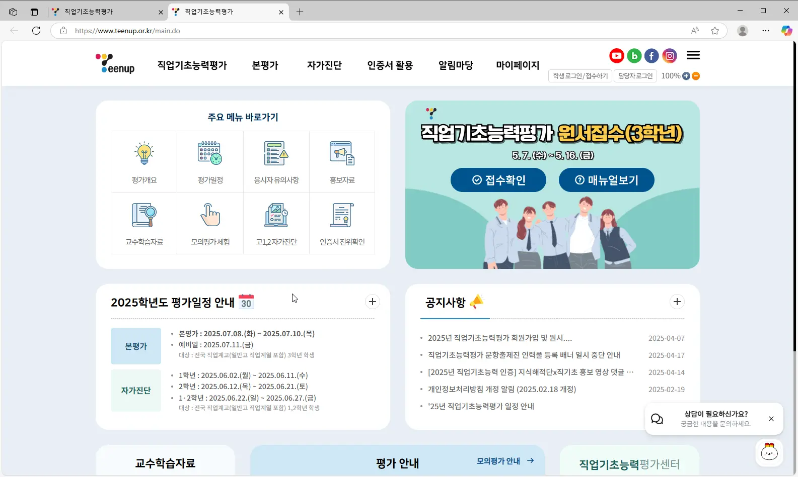 틴업 직업기초능력평가 (https://www.teenup.or.kr)