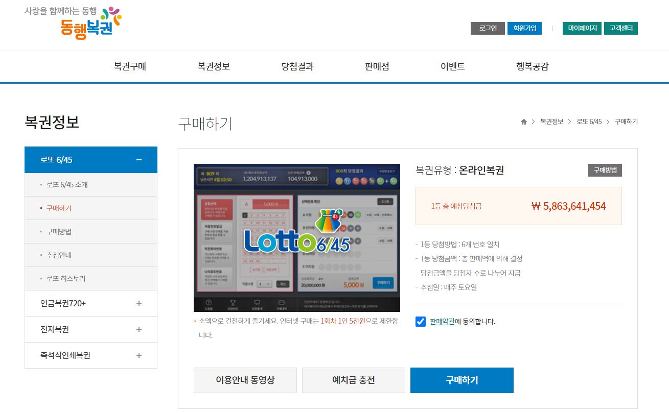 온라인으로 구매를 위해서는 회원가입을 통하여 로그인을 하셔야 하구요. 다음으로 예치금을 넣어서 그 금액을 바탕으로 복권을 구입하실 수 있는 구조를 가지고 있습니다.