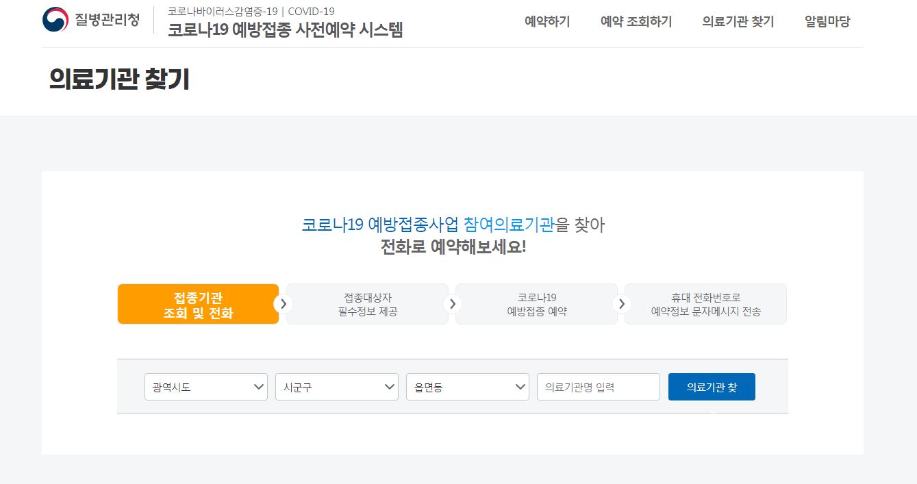 온라인 홈페이지에 방문을 하시게 되면 코로나19 예방접종 온라인 예약방법 및 예약이 가능한 의료기관도 찾기가 가능합니다. 돌봄종사자 및 항공승무원은 4월 12일부터 4월 23일까지 사전예약이 진행이 되구요.