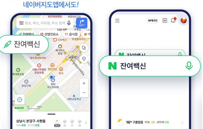 네이버에서 잔여백신 당일예약 조회는 네이버지도앱이나 네이버 모바일 웹 홈페이지나 애플리케이션을 통해서 가능합니다. 조회 후 계정으로 로그인 후에 본인인증을 통하여 접종 예약을 진행하실 수 있다고 합니다.
