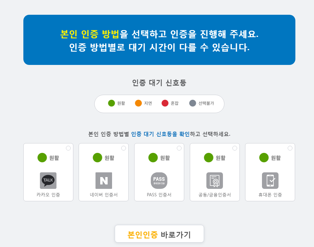 사전예약은 코로나19 예방접종 사전예약 시스템 홈페이지를 통하여 본인 인증 후에 가능합니다. 인증은 다양한 방식을 지원하기 때문에 확인 후 진행해보시기 바랍니다.