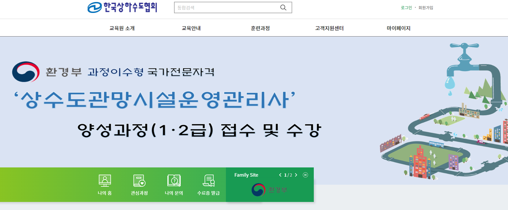 상수도 관련된 교육원으로써 교육안내와 훈련과정을 확인할 수 있는 한국상하수도협회 홈페이지가 운영이 되어지고 있습니다. 온라인 홈페이지 확인하시고 필요한 정보 얻어가십시오.