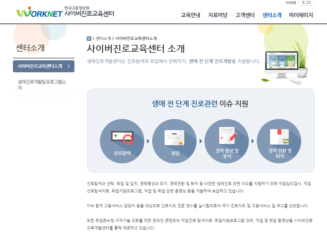 한국고용정보원 사이버진로교육센터 (www.work.go.kr/cyberedu/)