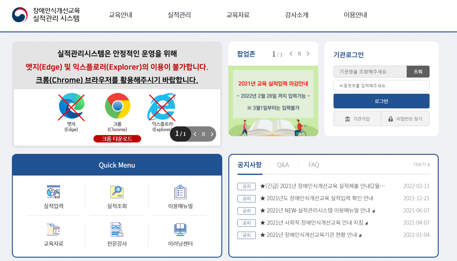 장애인식개선교육 실적관리 시스템 (www.able-edu.or.kr)