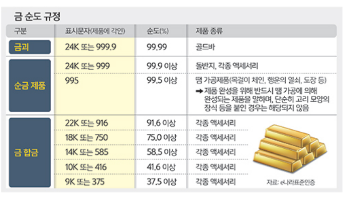 금을 구매하실 때에 순금이라면 금의 함량, 즉 순도를 잘 따져보셔야 합니다. 특히 함유량 99.9%를 순금이라고 하는데요. 그러나 99.5%도 기술표준원에서는 순금으로 인정한다고 합니다.