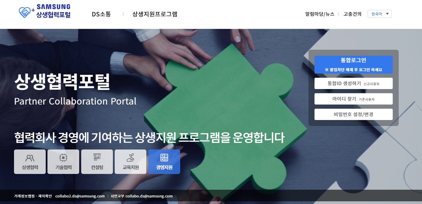 삼성전자 DS부문 상생협력포털 시스템 (partner.samsungsemi.com)