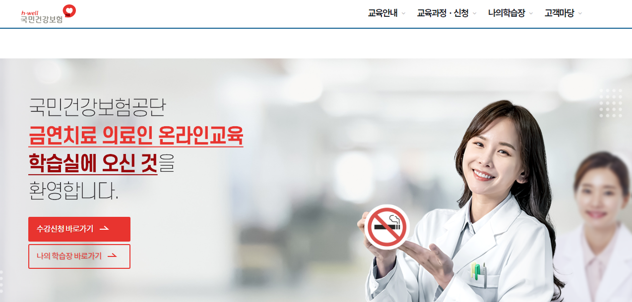 금연치료를 진행하는 의료인이라면 필수적으로 받아야 하는 교육과정이 온라인으로 제공되고 있습니다. 금연치료를 제공하는 의료기관에 종사하시는 분들이라면 금연치료 의료인 온라인교육센터를 통하여 교육과정 이수하시길 바랍니다.
