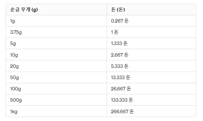 순금 한돈의 무게