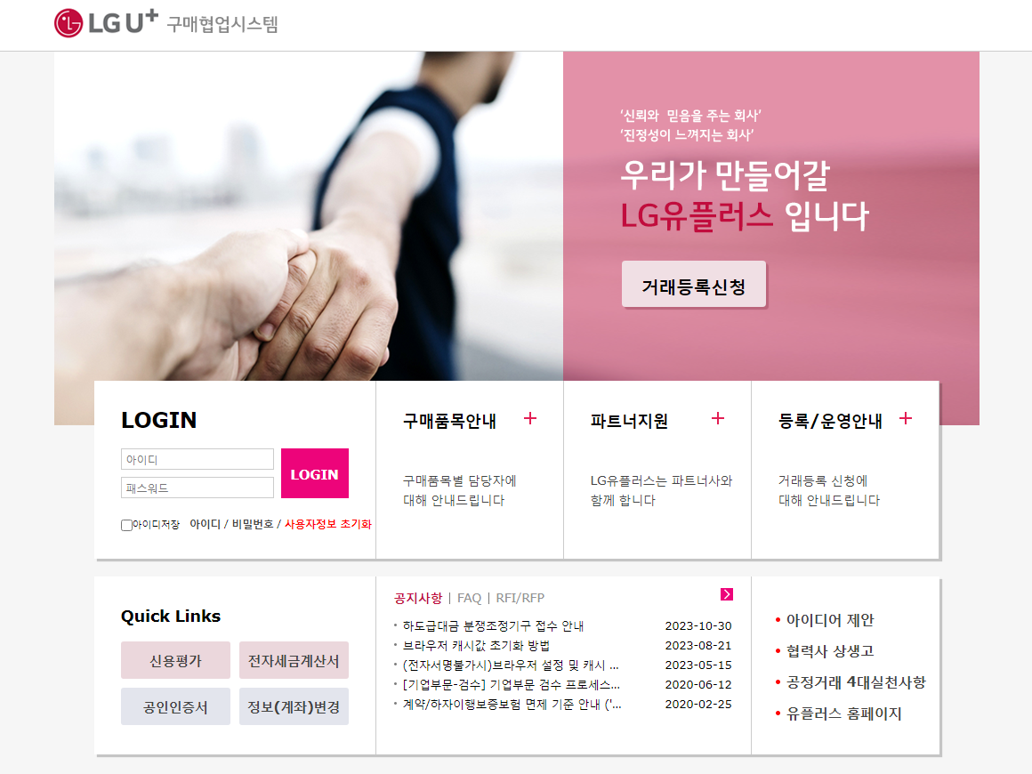 LG U+ 구매협업시스템 (https://suppliers.lguplus.co.kr)