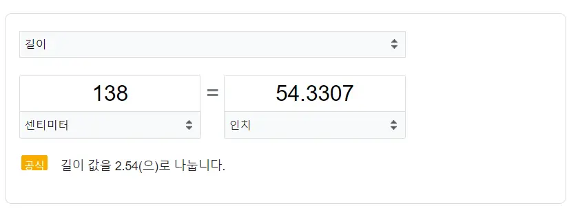 센티미터를 인치로 변환하려면 'cm / 2.54 = 인치'라고 생각하시면 됩니다. 따라서 138센티미터 텔레비전의 화면 크기를 인치로 변환하면 138 / 2.54 = 54.33이므로, 약 54인치라고 할 수 있습니다. 다만 일반적으로 55인치 TV가 138cm로 표기가 되어지고 있습니다.
