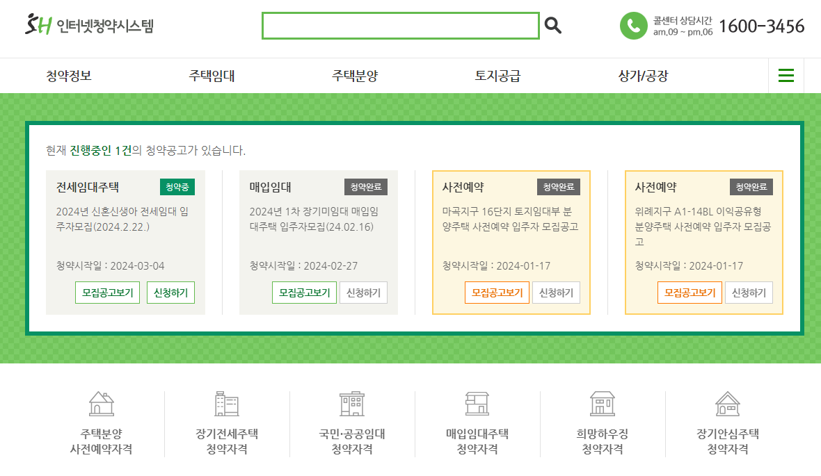 청약을 준비하시는 분들은 청약자격정보, 당첨자 조회, 납부금 조회, 보수 처리 조회 등의 서비스도 함께 이용해보시기 바랍니다.
