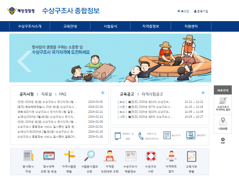 특히 수상구조사를 준비하시는 분들은 관련 교육, 자격시험에 대한 부분을 확인하실 수 있느니 유용할 것 같습니다.