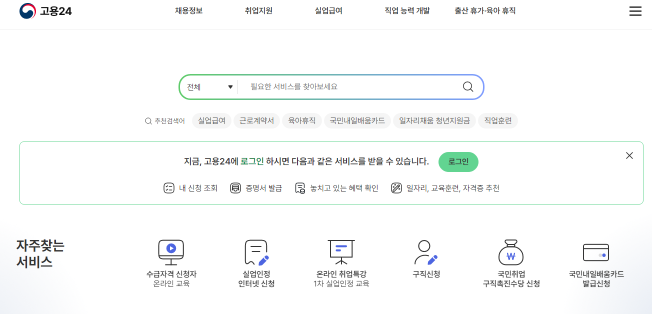 고용24는 국민 누구나 원하는 일자리에서 마음껏 역량을 발휘할 수 있도록 제공하는 시스템입니다. 여러 고용관련 정보와 서비스를 제공하여 고용 환경 개선에 크게 기여하고 있다고 합니다. 자세한 정보는 고용24홈페이지를 참고하시기 바랍니다.
