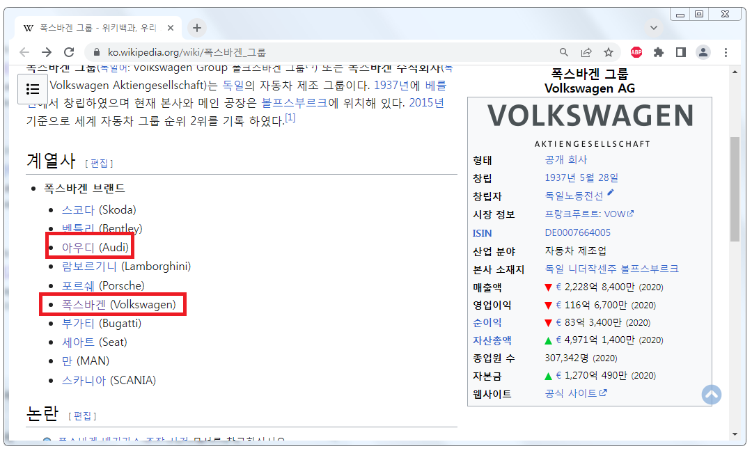 아우디와 폭스바겐 같은 회사인가요?