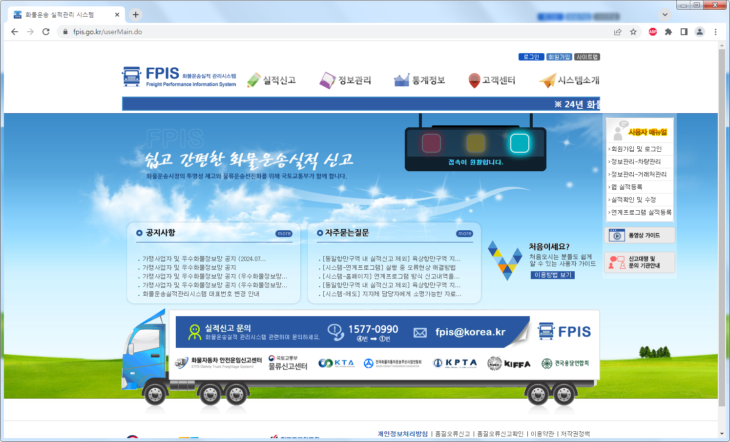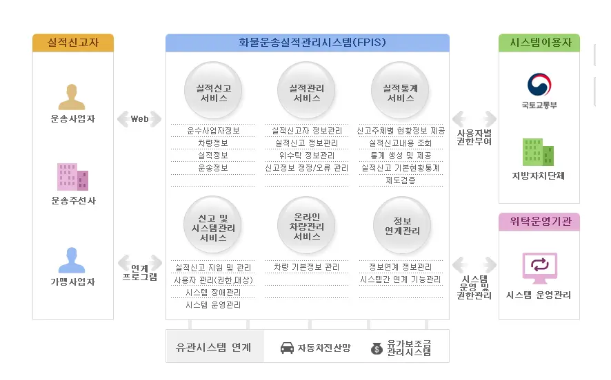 - 실적 신고 및 관리 : FPIS 시스템을 통해 운송업체는 운송 실적을 쉽게 신고하고 관리할 수 있습니다.