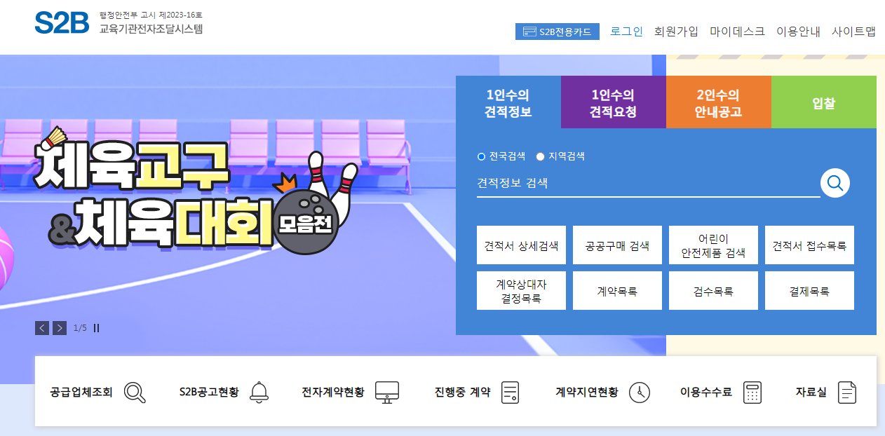 S2B 교육기관 전자조달시스템 (www.s2b.kr/S2BNCustomer)