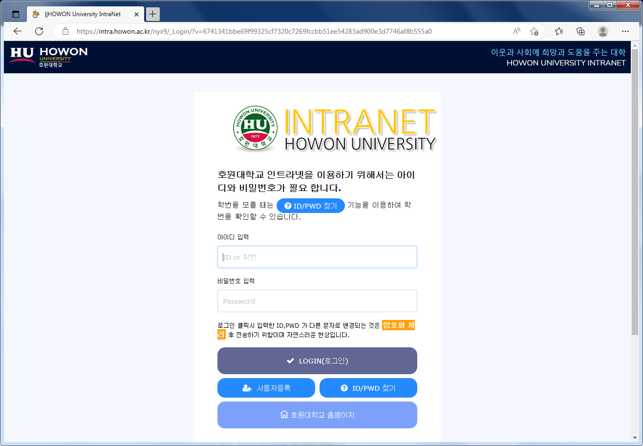 호원대학교 인트라넷 시스템 (intra.howon.ac.kr)