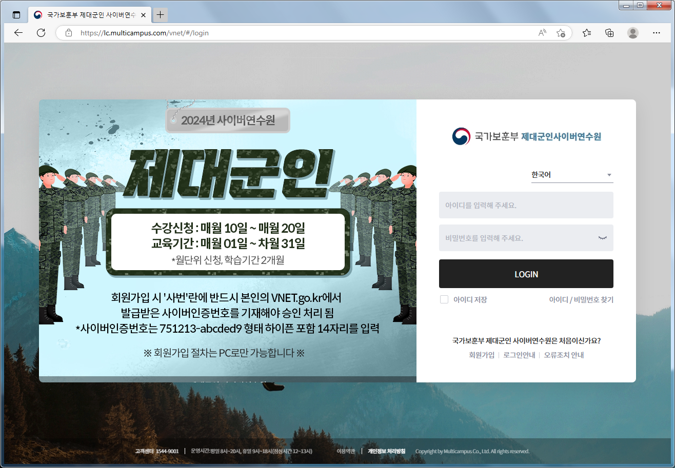 제대군인 지원센터 사이버연수원 (http://vnet.multicampus.com)