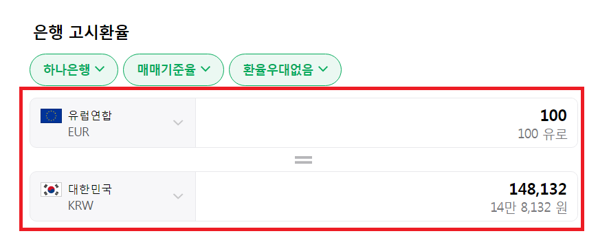 현재 유로에서 대한민국 원으로 전환하면 1유로에 대략 1481원입니다. 그렇기 때문에 100유로를 한국돈으로 계산하면 대략 14만 8천원이 나옵니다.